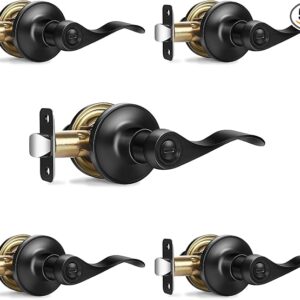 • 5 Pack Privacy Door Handles Matte Black Door Handles, Wave Style Reversible Keyless Door Levers, Heavy Duty Interior Door Knobs for Bedroom Bathroom Doors